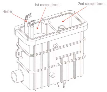 With the new design of double water compartment tank from ' ELTON ' electric water heater, users will be totally free from the scalding problem. The water in the first (1st) compartment tank is for heating-up the water. Thereafter the heated water will be transferred to the second (2nd) compartment tank to prevent rise of temperature above the preset temperature.